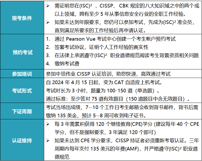 国际注册信息系统安全认证是目前世界上权威、最全面的国际化信息系统安全方面的认证,证书持有者具备了符合国际标准要求的信息安全知识水平和经验能力,提升其专业可信度,并为企业和组织提供寻找专业人员的凭证依据,目前已经得到了全世界广泛的认可。截止至2022年1月官方最新的统计数据,中国总人数为3866人。而越来越多的公司要求自己和合作伙伴的员工拥有该认证,该资质持有者目前供不应求。取得认证,表明持有者拥有完善的信息安全知识体系和丰富的行业经验,以卓越的能力服务于各大IT相关企业及电信、金融、大型制造业、服务业等行业。