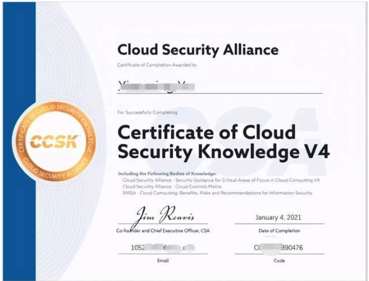 CCSK考试提交后即可生成成绩并下载电子版证书。该证书无需续证,长期有效。