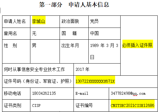 《注册信息安全人员维持申请表》(Word版填写,打印后部分内容需手写签名或盖章);