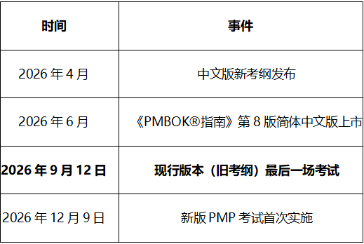 一、2026年PMP考试改版核心时间轴(精准记忆)